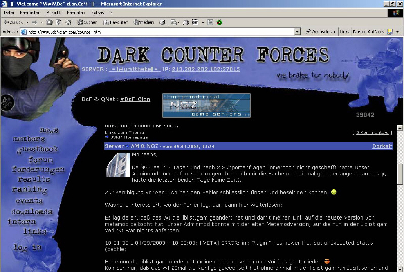 Nach einiger Zeit zog es mich zu neuen Herausforderungen , und mehr Aktivität ; ich bewarb mich bei meinem zweiten Clan , dem DcF-Clan ( Dark Counter Forces ) . Die DcF'ler sind zu meinem Leidwesen erheblich besser als die FFE'ler , aber wie sagt man so schön , "Skill ist nicht alles" .....